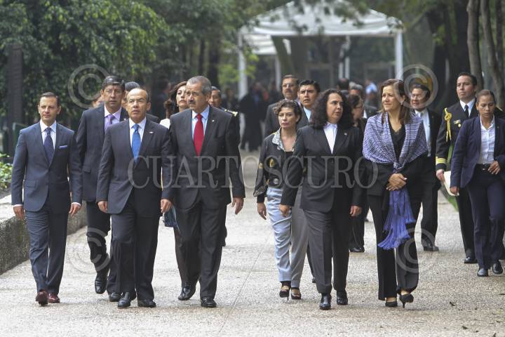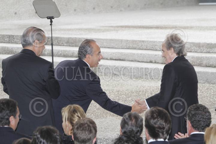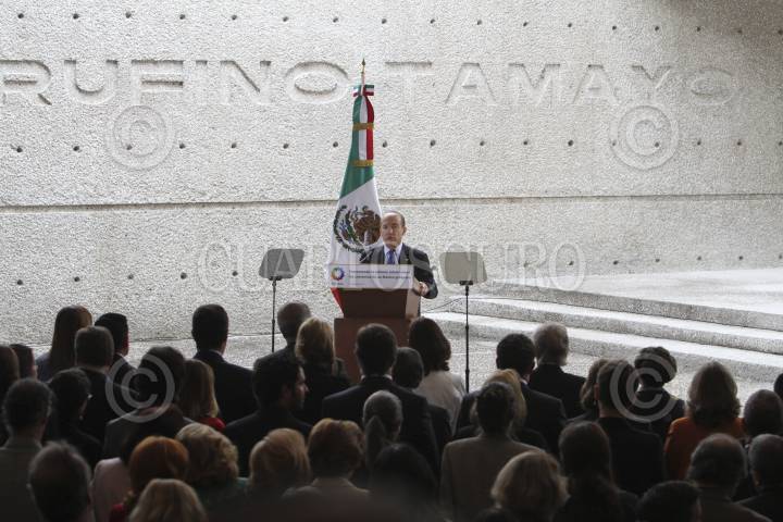 MÉXICO, D.F., 21AGOSTO2012.- Felipe Calderón Hinojosa, Presidente de México, acompañado de su esposa Margarita Zavala, Consuelo Sáizar, Presidenta de Conaculta José Ángel Córdoba Villalobos, titular de la SEP y el arquitecto Teodoro González de León, encabezo la ceremonia de reinauguración del Museo Rufino Tamayo. FOTO: GUILLERMO PEREA /CUARTOSCURO.COM