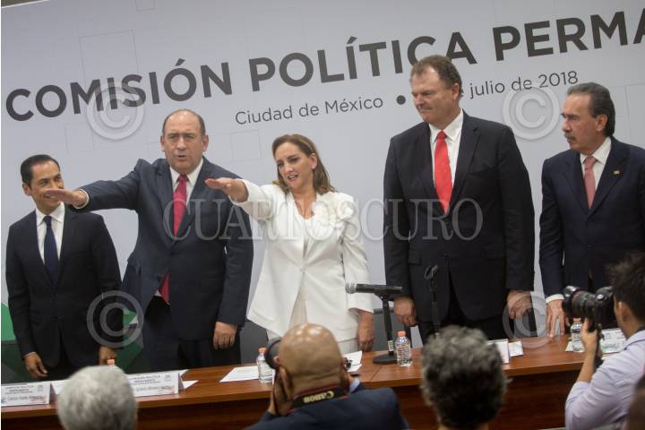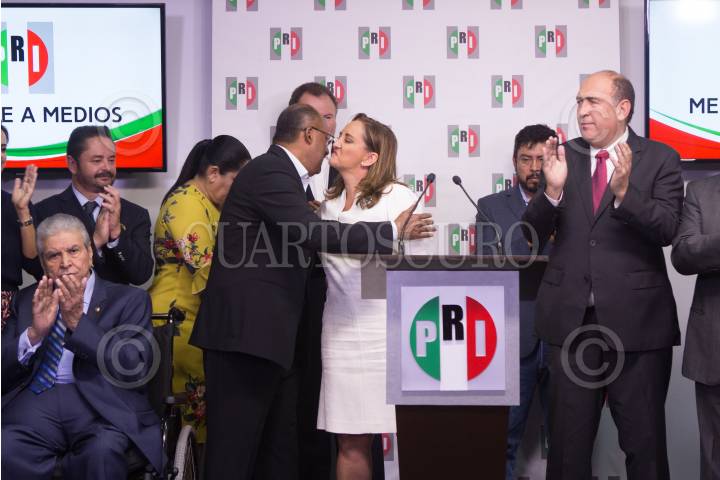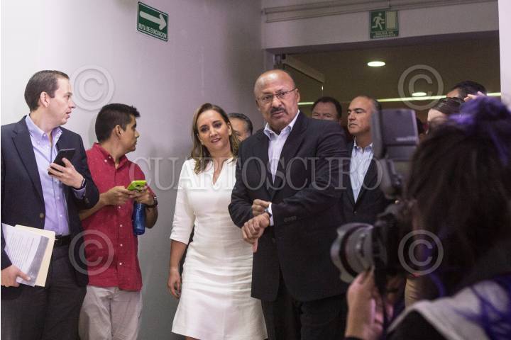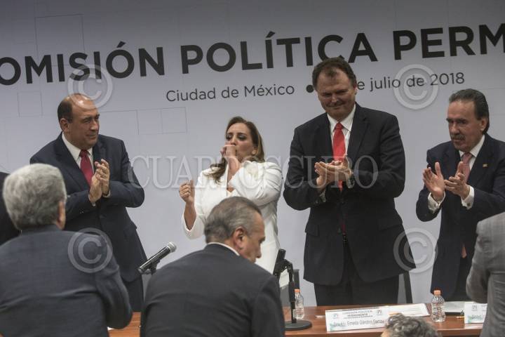 CIUDAD DE MÉXICO, 18JULIO2018.- El ex presidente nacional del PRI Manlio Fabio, tomó protesta a Rubén Moreira, y Claudia Ruiz Massieu como nueva presidenta nacional del partido y secretario general ante la renuncia de René Juárez FOTO: TERCERO DÍAZ /CUARTOSCURO.COM