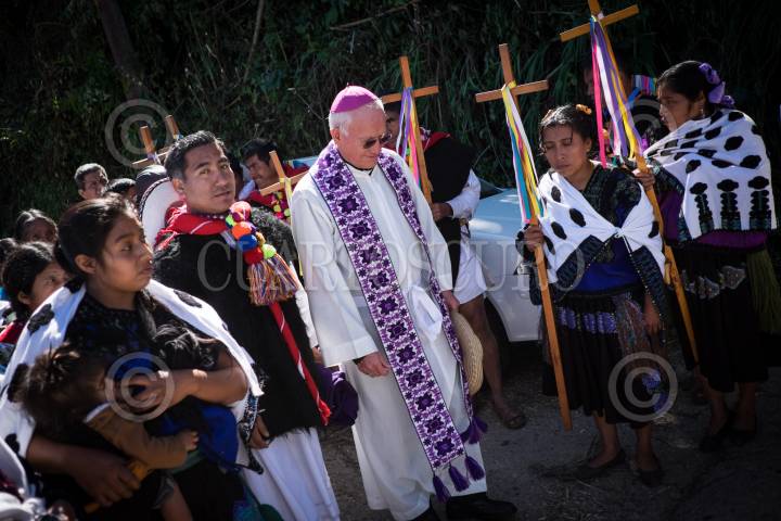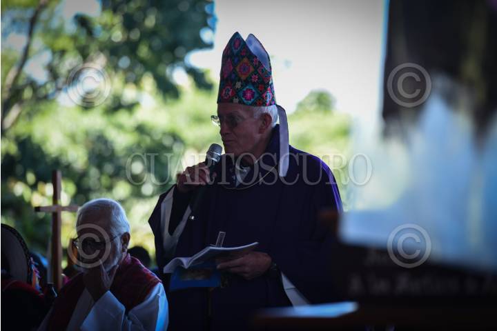 CHENALHO, CHIAPAS, 22DICIEMBRE2018.- La Sociedad Civil "Las Abejas de Acteal", conmemoraron esta tarde el 21 aniversario de "La Matanza de Acteal". La conmemoración, que se llevó a cabo en la comunidad de Acteal, contó con la presencia del obispo de la diócesis de San Cristobal de las Casas, Rodrigo Aguilar Martínez, quien ofició una misa. FOTO: PEDRO ANZA /CUARTOSCURO.COM