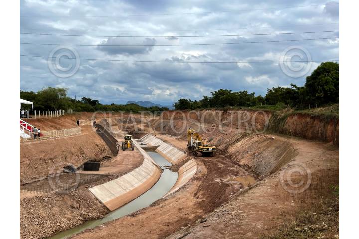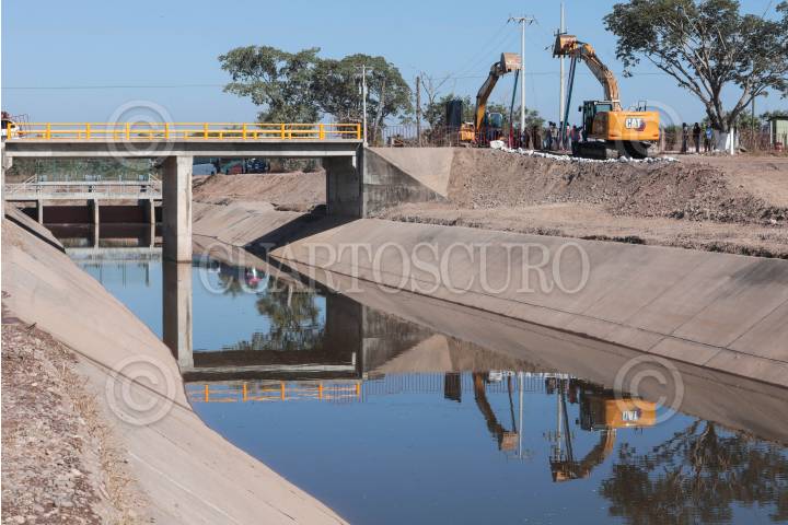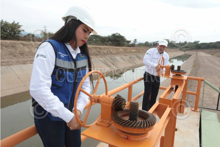 Apertura de las compuertas de la primera etapa del canal del distrito de riego Alejandro Gascón Mercado.
