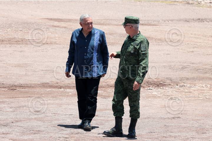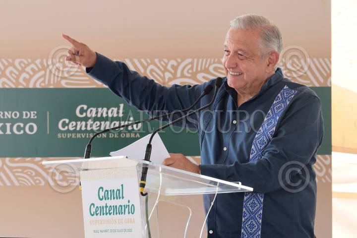 Andrés Manuel López Obrador, presidente de México, presidió la Supervisión de la obra Canal Centenario en el km 27+680 de la carretera Ruiz- Zacatecas, localidad San Lorenzo, Ruiz, Nayarit.