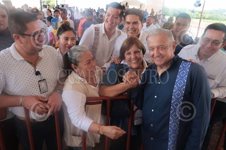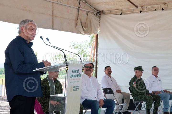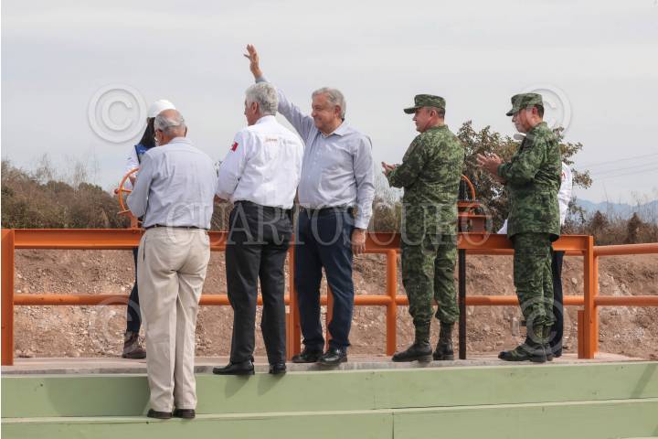 Andrés Manuel López Obrador, presidente de México, encabezó la supervisión de la apertura de las compuertas de la primera etapa del canal del distrito de riego Alejandro Gascón Mercado.