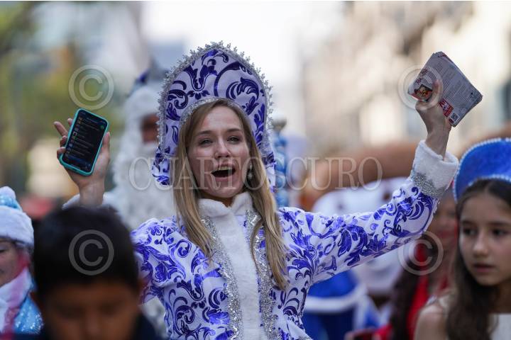 CIUDAD DE MÉXICO, 22DICIEMBRE2024.- Integrantes de la comunidad rusa en México realizaron el desfile Ded Moroz y Snegurochkas, tradición de las fechas decembrinas. Las y los personajes sacados de los cuentos rusos desfilaron por el corredor Madero e interactuaron con las y los capitalinos. FOTO: GALO CAÑAS/CUARTOSCURO.COM