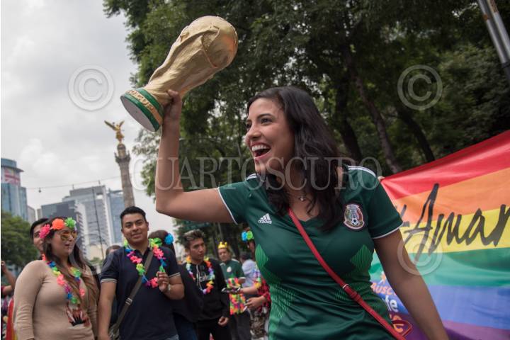 CIUDAD DE MÉXICO, 17JUNIO2018.- Tras la victoria de 1-0 de México sobre Alemania en la fase inicial de la Copa del Mundo Rusia 2018 la afición mexicana se congregó en las inmediaciones del Ángel de la Independencia, y tras varias horas de festejo con la combinación de bebidas embriagantes se presentaron algunos roces de los asistentes con la policía que resguardaba la zona, sin embargo, el festejo se llevo sin incidentes mayores. FOTO: MOISÉS PABLO /CUARTOSCURO.COM