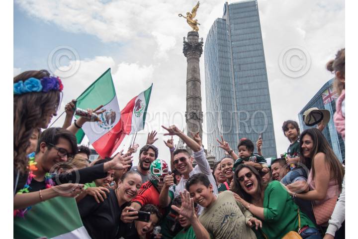 CIUDAD DE MÉXICO, 23JUNIO2018.- Miles de personas se concentraron en el Ángel de la Independencia para celebrar la victoria del conjunto mexicano frente a su similar de Corea del Sur, con un marcador a favor de 2 a 1, partido que representa el segundo partido del tricolor en fase de grupos de la Copa del Mundo Rusia 2018. FOTO: MARIO JASSO /CUARTOSCURO.COM
