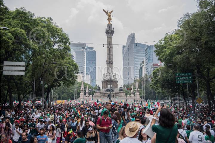 CIUDAD DE MÉXICO, 27JUNIO2018.- Miles de mexicanos se concentraron en el Ángel de la Independencia para celebrar el pase de la Selección Mexicana a octavos de final de la Copa del Mundo Rusia 2018. FOTO: MARIO JASSO /CUARTOSCURO.COM
