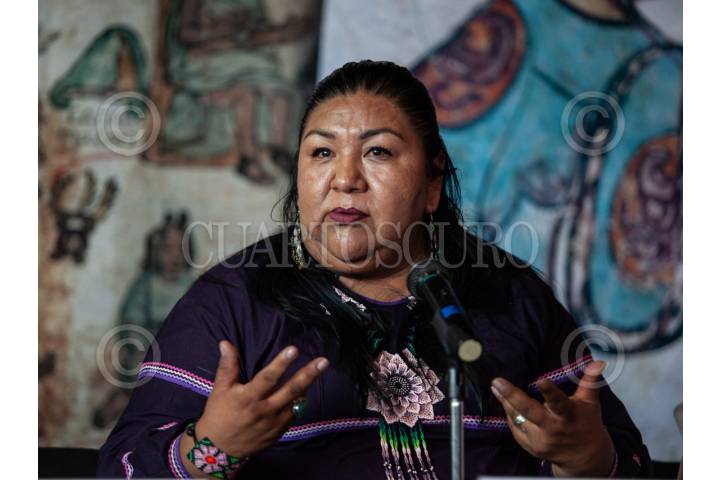 CIUDAD DE MÉXICO, 15JULIO2025.- Claudia Oliva Morales, presidenta del Consejo Nacional para Prevenir la Discriminación (Conapred) encabezaron conferencia de prensa sobre la inscripción de la Ruta Wixárika, a la lista del patrimonio mundial de la Unesco, que se llevó a cabo en el Museo de Antropología. FOTO: ANDREA MURCIA /CUARTOSCURO.COM