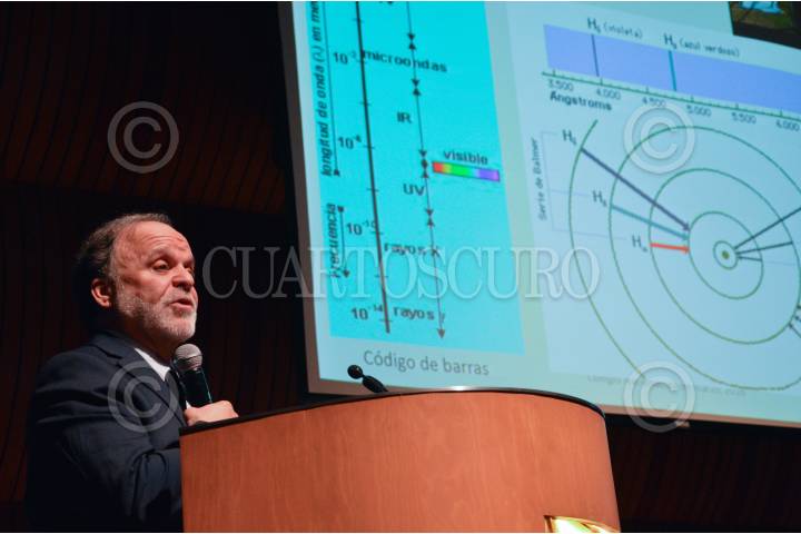 CIUDAD DE MÉXICO, 31MARZO2016.- El físico e investigador, Alejandro Frank, recibió en sesión solemne el reconocimiento que lo acredita como nuevo miembro de El Colegio Nacional, institución que agrupa a los científicos, artistas y literatos más destacados de México con el propósito de preservar y dar a conocer lo más importante de estas ramas. La sesión contó con la presencia de integrantes destacados del colegio como Octavio Navarro Peñalosa, investigador; Enrique Graue Wiechers, rector la UNAM; el médico, Ruy Pérez Tamayo, y el biólogo, Pablo Rudomin. Durante el acto Alejandro Frank expuso al público asistente y a los catedráticos su investigación acerca de la simetría en la naturaleza y los sistemas complejos dentro de ella. En la imagen Alejandro Frank. FOTO: GALO CAÑAS /CUARTOSCURO.COM
