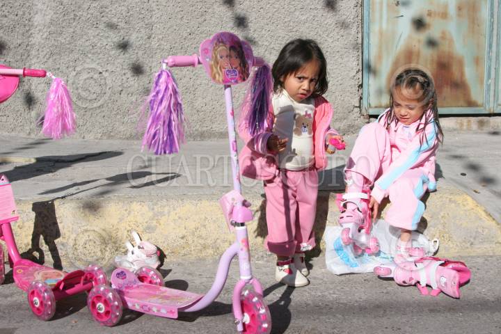 MÉXICO, D.F., 06ENERO2009.- Esta mañana los Reyes Magos visitaron diversos hogares del país a dejar juguetes o ropa por tal motivo algunos niños salieron a jugar a las calles FOTO: RICARDO CASTELAN/CUARTOSCURO.COM