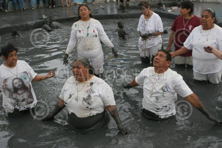 ESPINAZO, MPIO. MINA,NUEVO LEON.19OCTUBRE2006.- Miles de Fidencistas se bañan en el charquito cuyas aguas tienen poderes que curan muchas enfermedades incluyendo las propias del corazòn. En el 68 aniversario decenas de miles seguidores llegan procedentes del país y la unión americana. José de Jesús Fidencio Constantino Síntora que nacio en Yuriria, Guanajuato el 17 de octubre de 1898 llego a este pueblo el 1923 y desde entonces mostro poderes sobrenaturales para curar enfermedades grtuitamente. FOTO PEDRO VALTIERRA/CUARTOSCURO.COM