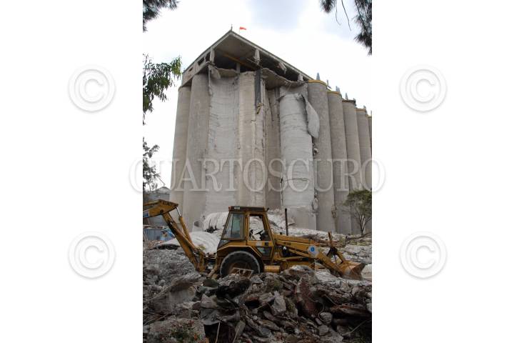 TLANEPANTLA, EDOMEX, 11JUNIO2008.- Debido a que los silos de grano de la compañía Almacenadora Sur S.A. de C.V. están a punto de colapsarse puesto que el sabado pasado se produjó una explosión producto de la combinación de gases y de un rayo, protección civil dictaminó mantener cerrado el lugar informó Carlos Ruiz Sánchez, subdirector de la dependencia. FOTO: MARIO NULO/CUARTOSCURO.COM