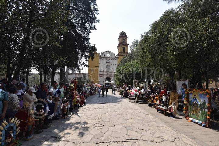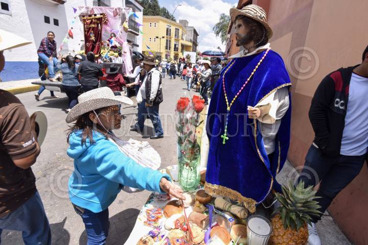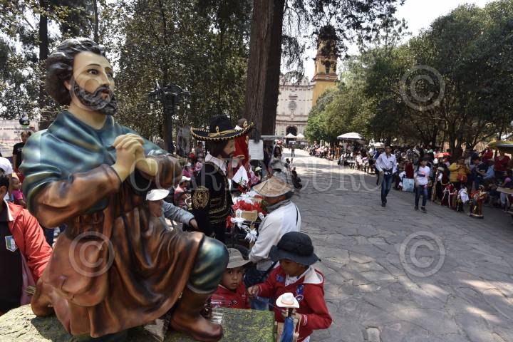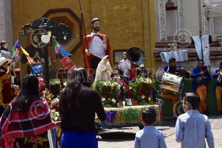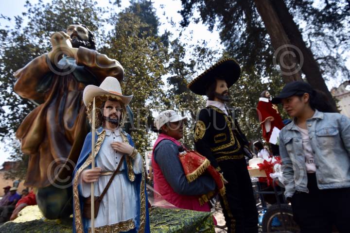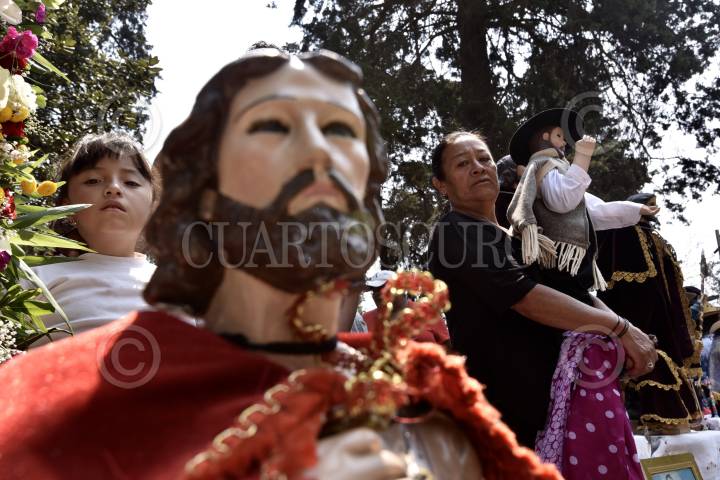 METEPEC, ESTADO DE MÉXICO, 15MAYO2019.- Habitantes de este municipio festejaron a su santo patrono San Isidro Labrador, llevando sus imágenes a misa en la iglesia de San Juan Bautista, y pedir por una buena cosecha y lluvias abundantes. FOTO: CRISANTA ESPINOSA AGUILAR /CUARTOSCURO.COM