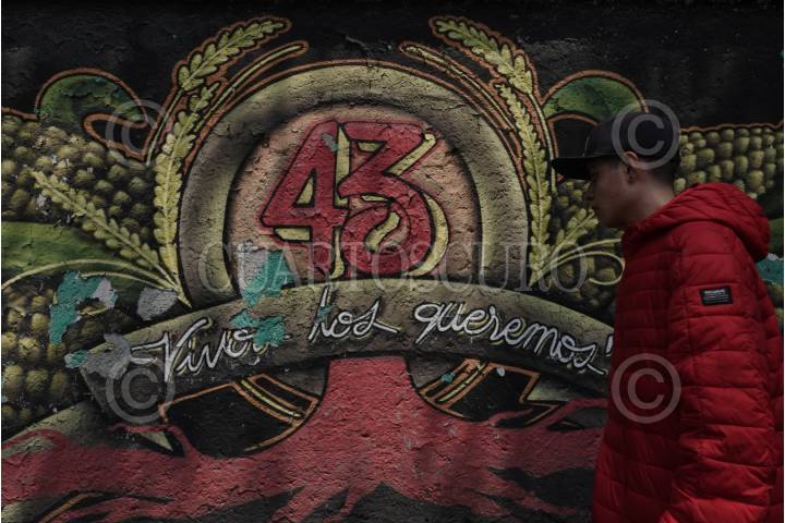 hombre camina frente a los murales que adornan las vallas del panteón San Isidro en Azcapotzalco