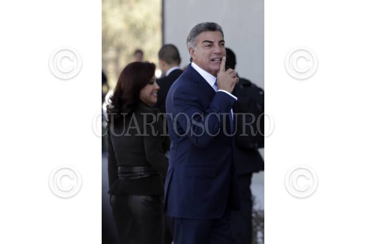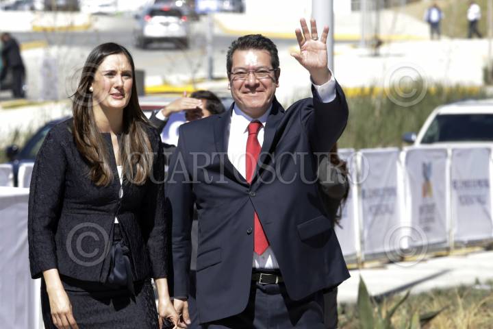 SAN JOSÉ CHIAPA, PUEBLA; 15ENERO2017.- Antonio Gali, gobernador electo de Puebla y su esposa Dinorah López de Gali, a su llegada al VI Informe del gobernador de Puebla Rafael Moreno Valle; llevado a cabo en el Centro de Convenciones de la ciudad modelo en San José Chiapa donde se estableció la empresa automotriz Audi. FOTO: HILDA RÍOS/ CUARTOSCURO.COM