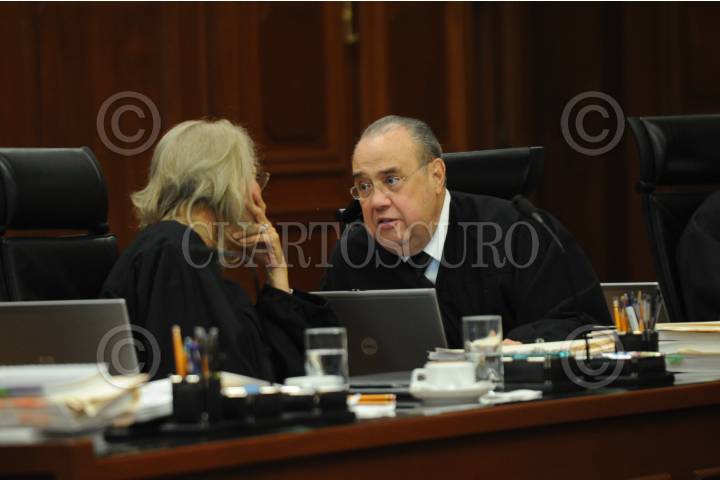 MÉXICO D.F. 16AGOSTO2010.- Los ministros, Olga María del Carmen Sanchez y Sergio Valls, durante la sesión ordinaria en la Suprema Corte de Justicia, donde fue aprobada con nueve votos a favor y dos en contra, la SCJN declaró infundado el juicio que promovió Arturo Chávez Chávez el procurador de la republica, contra la reforma al Código Civil que permite este tipo de uniones en el DF. FOTO: GUILLERMO PEREA/CUARTOSCURO.COM