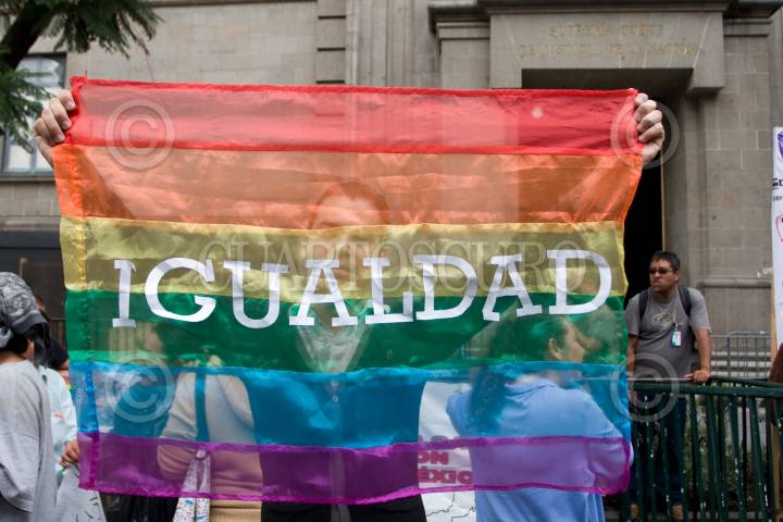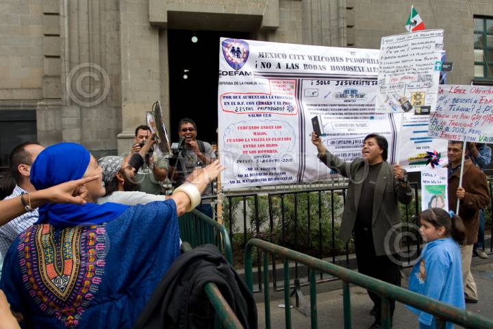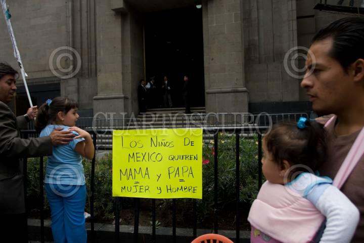 MÉXICO D.F. 16AGOSTO2010.- Durante la sesión ordinaria en la Suprema Corte de Justicia, donde fue aprobada con nueve votos a favor y dos en contra, la SCJN declaró infundado el juicio que promovió el procurador, Arturo Chávez Chávez, de la republica, contra la reforma al Código Civil que permite este tipo de uniones en el DF. Integrantes de diversos grupos a favor y en contra de la adopción se manifestaban a la afueras de este recinto. FOTO: GUILLERMO PEREA/CUARTOSCURO.COM