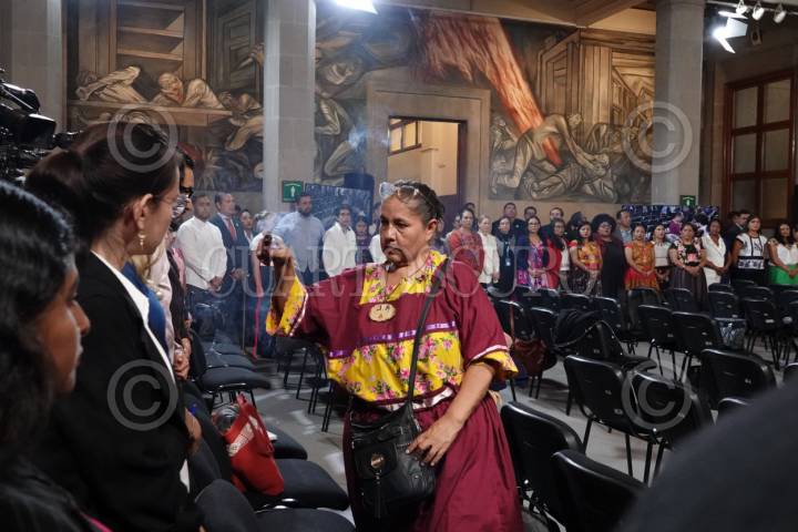 CIUDAD DE MÉXICO, 10SEPTIEMBRE2025.- Ceremonia tradicional de los pueblos indígenas de Baja California se realizó previo al inicio del Espacio de Diálogo de los Saberes: Las Mujeres Indígenas y Afromexicanas en la Nueva SCJN en la sede central del Poder Judicial. FOTO: GALO CAÑAS/CUARTOSCURO.COM
