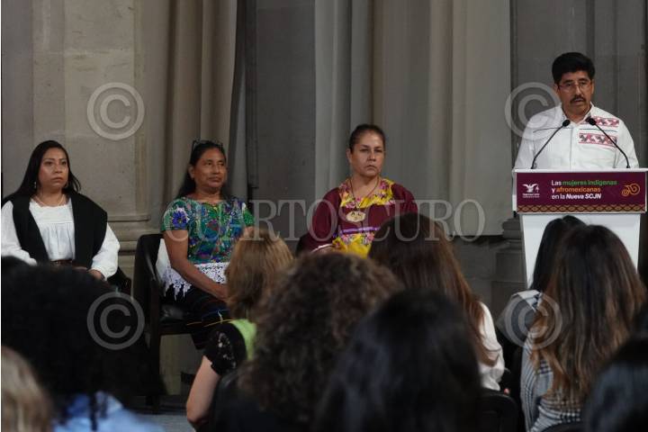 CIUDAD DE MÉXICO, 10SEPTIEMBRE2025.- Hugo Aguilar Ortiz, ministro presidente de la Suprema Corte de Justicia de la Nación, durante la realización del Espacio de Diálogo de los Saberes: Las Mujeres Indígenas y Afromexicanas en la Nueva SCJN en la sede central del Poder Judicial. A su espalda se le la inscripción en latín "Possimus" que se traduce como "nosotros podamos" o "que nosotros podamos". FOTO: GALO CAÑAS/CUARTOSCURO.COM