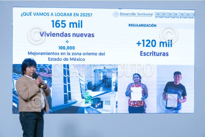 CIUDAD DE MÉXICO, 02JULIO2025.- Edna Vega, titular de la SEDATU, en la Conferencia del Pueblo,, anunció los proyectos que realizará la dependencia en los 10 municipios mexiquenses. FOTO: DANIEL AUGUSTO/ CUARTOSCURO.COM