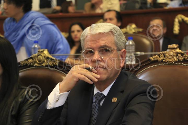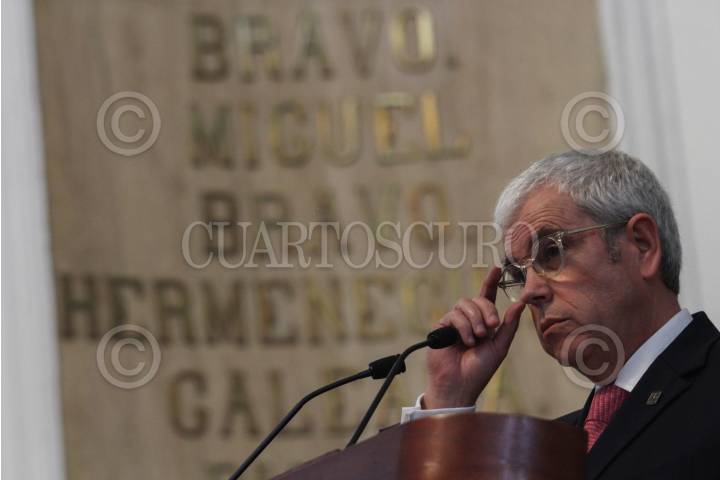 MÉXICO, D.F., 06OCTUBRE2015.- Felipe de Jesús Gutiérrez, titular de la Secretaría de Desarrollo Urbano y Vivienda, compareció ante el pleno de la Asamblea Legislativa del Distrito Federal. A lo largo de 20 minutos presentó su comparecencia ante los asambleístas, mientras se manifestaban, al exterior del recinto, decenas de integrantes de la Asamblea de Barrios y vecinos de la colonia Pencil, quienes exigían el aumento de presupuesto para la colonia. FOTO: MARÍA JOSÉ MARTÍNEZ /CUARTOSCURO.COM