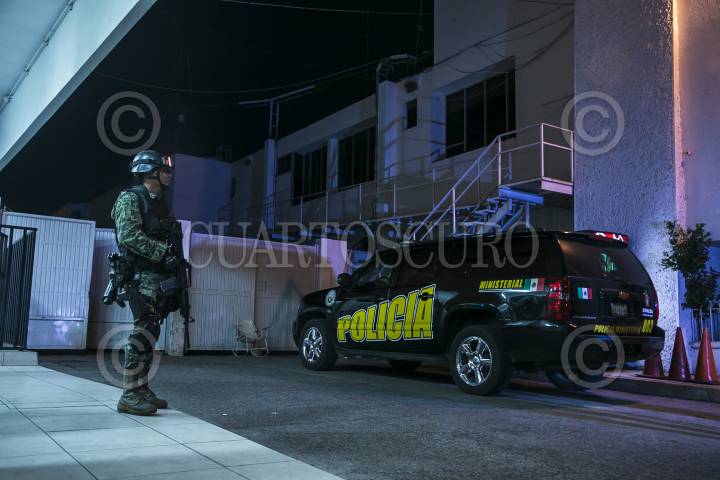 CULIACÁN, SINALOA, 18FEBRERO2017.- Un operativo por parte de efectivos de la Secretaría de la Defensa Nacional dio como resultado dos personas detenidas y un inmueble asegurado. Los hechos se registraron en el fraccionamiento Acueducto, de manera extraoficial se dice que uno de los detenidos es Iván Archivaldo Guzmán y el otro fue identificado como Fransisco Javier Zazueta jefe de la célula delictiva apodada ¨Los Chimales¨, dicha versión hasta el momento no ha sido confirmada por ninguna autoridad, Militares mantienen sitiada las instalaciones de la PGR en Culiacán. FOTO: RASHIDE FRIAS /CUARTOSCURO.COM
