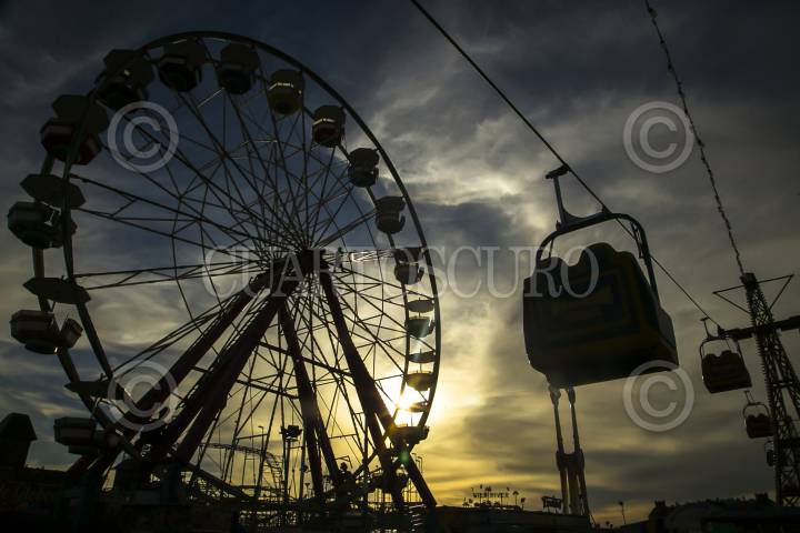 CULIACÁN, SINALOA, 01DICIEMBRE2016.- En las alturas de la rueda de la fortuna, un hombre realiza los trabajos de mantenimiento mientras la tarde cae en la feria de la ciudad. FOTO: RASHIDE FRIAS /CUARTOSCURO.COM