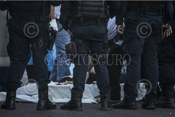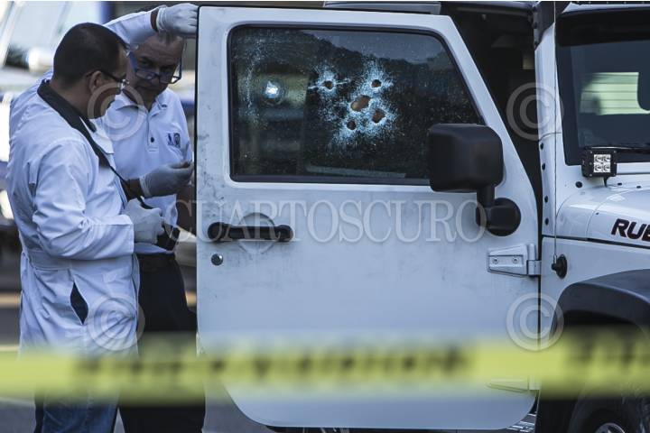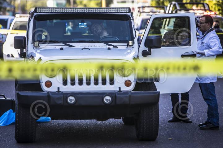 CULIACÁN, SINALOA, 14DICIEMBRE2016.- Un joven identificado como Noe Usiel Larreta fue asesinado a balazos por un sujeto armado mientras conducía una camioneta tipo Jeep color blanca sobre la avenida Tarahumaras y Manuel Clouthier. En el lugar se localizaron alrededor de nueve casquillos 9mm como evidencia, la zona fue asegurada por policías estatales y municipales. FOTO: RASHIDE FRIAS /CUARTOSCURO.COM