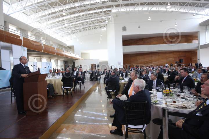 SAN LUIS POTOSÍ, SAN LUIS POTOSÍ 03AGOSTO2011.- Felipe Calderón Hinojosa, presidente de México, comió con empresarios en el marco de su gira por este estado. FOTO: ALFREDO GUERRERO/CUARTOSCURO.COM