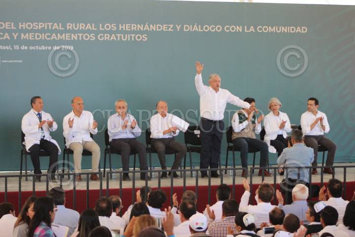 SAN LUIS POTOSÍ, S.L.P., Andrés Manuel López obrador, presidente de México; Zoé Robledo, director del Instituto Mexicano del Seguro Social (IMMS), y Jorge Alcocer Varela, secretario de Salud, encabezaron la inauguración de la Clínica "Los Hernández". FOTO: MARCELO PALACIOS /CUARTOSCURO.COM