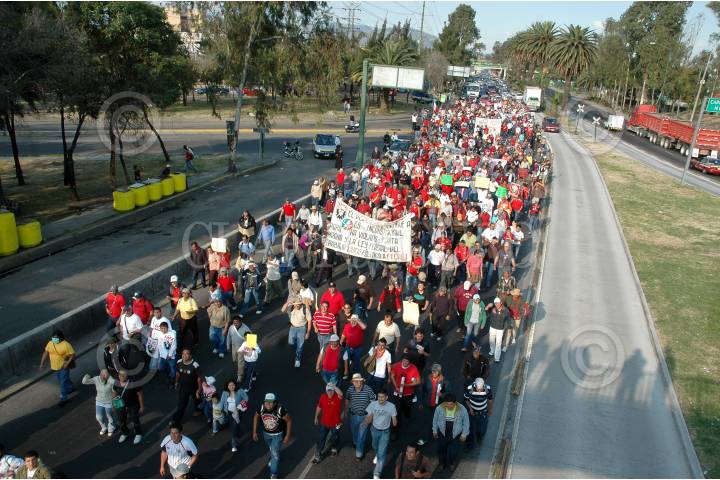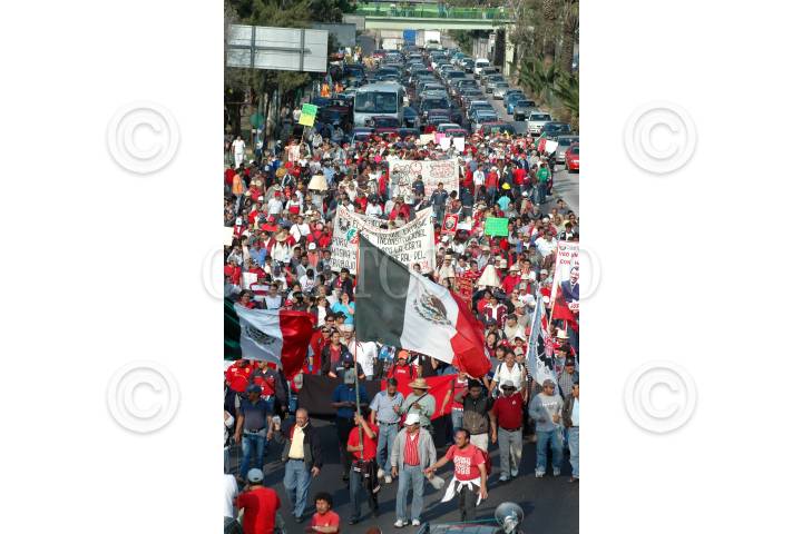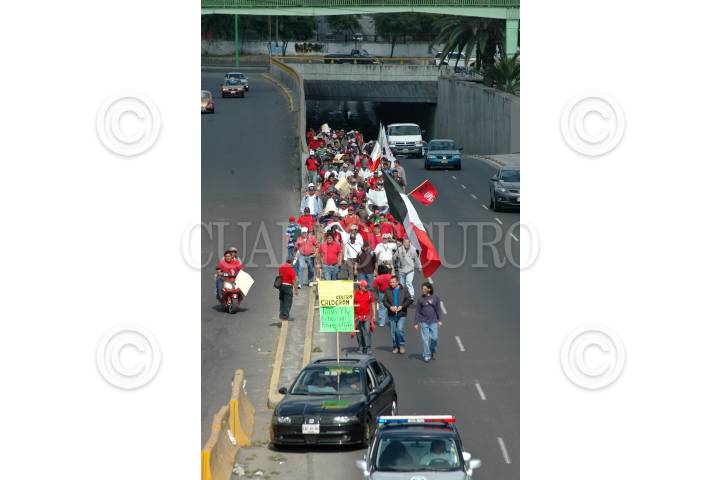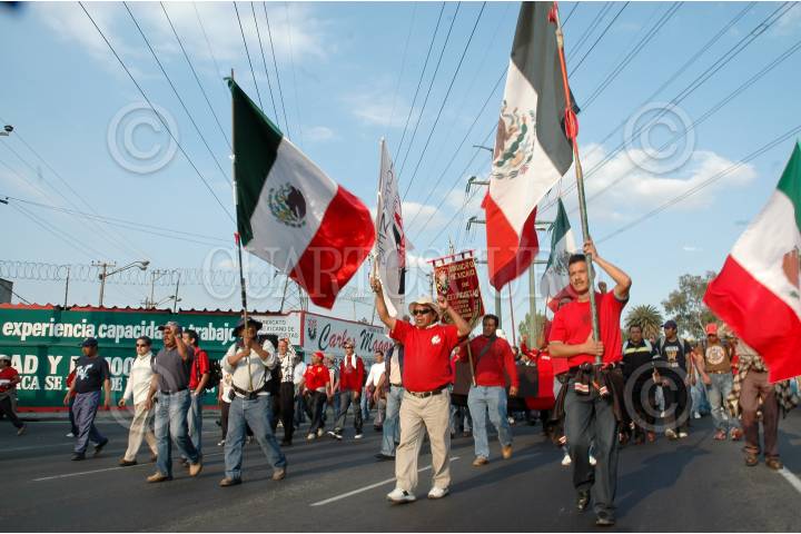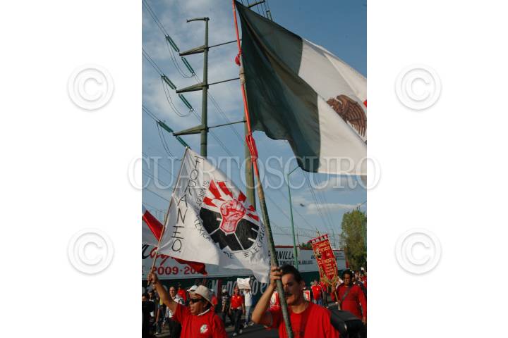 MÉXICO, D.F., 11NOVIEMBRE2009.- Miembros y simpatizantes del Sindicato Mexicano de Electricistas (SME) procedentes de Ecatepec arribaron desde la carretera México - Pachuca hacia el metro La Raza sobre Insurgentes Norte en donde marcharon hacia el Zócalo capitalino por motivo del paro cívico nacional en apoyo al SME. FOTO: RODOLFO ANGULO/CUARTOSCURO.COM