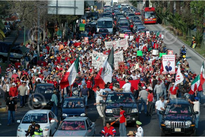 MÉXICO, D.F., 11NOVIEMBRE2009.- Miembros y simpatizantes del Sindicato Mexicano de Electricistas (SME) procedentes de Ecatepec marcharon sobre Insurgentes Norte hacia el Zócalo capitalino por motivo del paro cívico nacional en apoyo al SME. FOTO: RODOLFO ANGULO/CUARTOSCURO.COM
