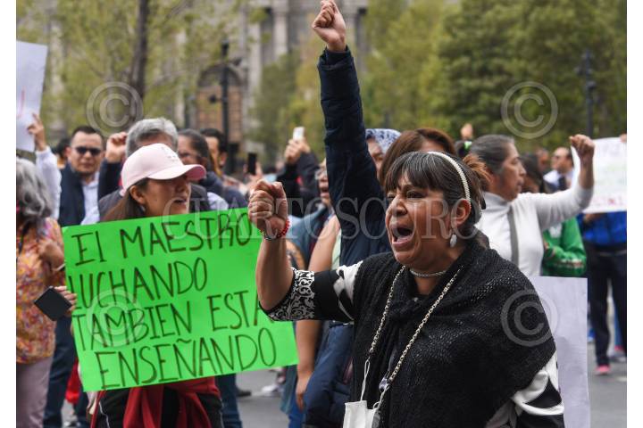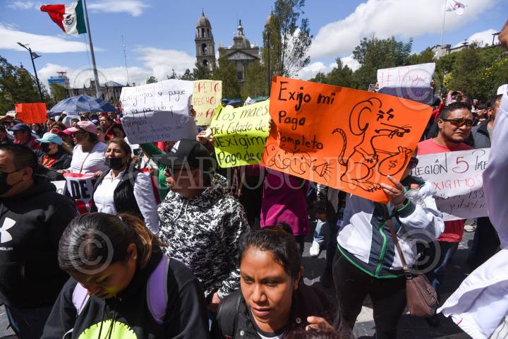 Integrantes del magisterio estatal marcharon en Toluca exigiendo la derogación de las UMAS en las jubilaciones y pensiones del magisterio del SMSEM y derechohabientes de ISSEMYM, activos y jubilados.