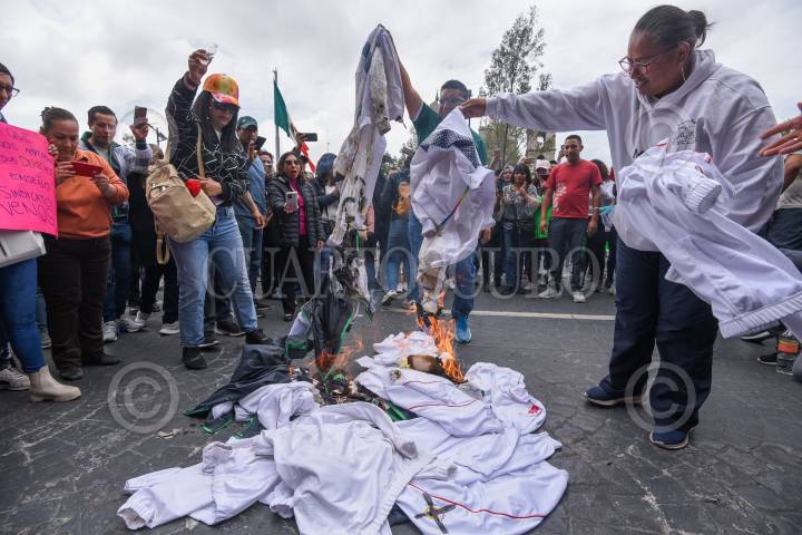 Por segundo día el magisterio mexiquense salió a las calles de Toluca en apoyo a sus compañeros de Naucalpan agredidos por elementos de la Policía Estatal así como exigir la salida de su líder sindical Marco Aurelio Carbajal y el pago completo, siembro salarial y prestaciones.