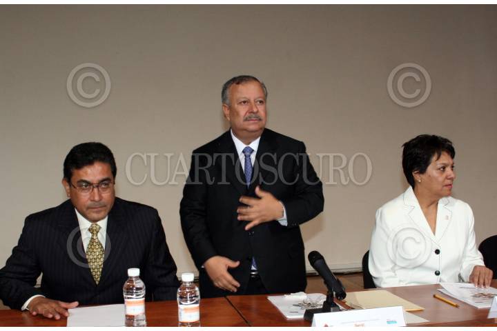 MÈXICO, D.F. 21FEBRERO2007.- El secretario general del SNTE Rafael Ochoa encabezò una conferencia de prensa para los trabajadores de la educaciòn. En la imagen con Gloria Isabel Cañizo, presidenta de la comisiòn de ciencia y tecnologìa de la Asamblea de Representantes del Distrito Federal y Alfonso Cepeda Salas, colegiado nacional de la organisaciòn del SNTE. FOTO: PAOLA HIDALGO/CUARTOSCURO.COM
