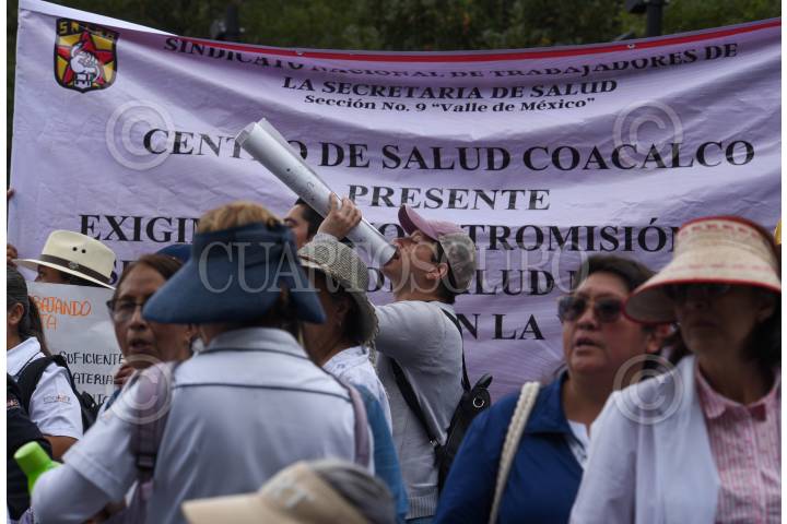 TOLUCA, ESTADO DE MÉXICO, 13JUNIO2024.- Trabajadores del Salud del Sindicato Nacional de Trabajadores de Salud (SNTSA) se manifestaron en la Jurisdicción Sanitaria Toluca del ISEM exigiendo la destitución de directivos denunciando malos tratos y los responsabilizan por el desabasto de insumos médicos y medicamentos. FOTO: CRISANTA ESPINOSA AGUILAR /CUARTOSCURO.COM