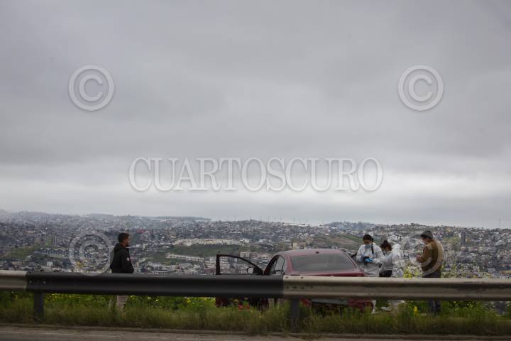 Servicios Periciales tomando fotografías al vehículo donde encontraron a dos hombres sin vida por sobredosis.