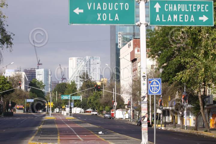 MÉXICO, D.F., 01ENERO2010.- Las calles de la ciudad están solas ya que la mayoría de los capitalinos pasaron el día en su casa luego de los festejos de fin de año. Aquí Avenida Chapultepec. FOTO: IVÁN STEPHENS/CUARTOSCURO.COM