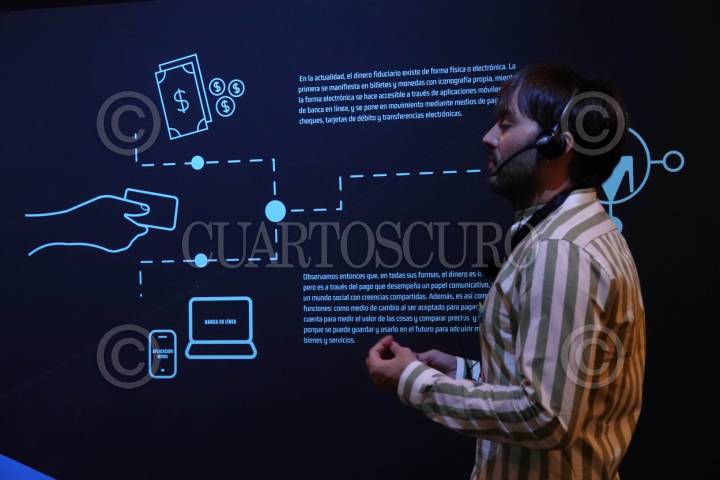 CIUDAD DE MÉXICO, 24ABRIL2024.- El museo del Banco de México realizó la inauguración de la exposición temporal “Pagos en movimiento. La revolución del SPEI®”, la cual busca integrar y acercar a la ciudadanía sobre el desarrollo de este nuevo mecanismo para el traslado de efectivo. FOTO: GALO CAÑAS/CUARTOSCURO.COM