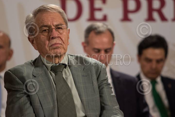 Jorge Alcocer, titular de la Secretaría de Salud en la conferencia matutina del día de hoy, en la que se anunció el inicio de la Fase Tres de la Contingencia Sanitaria por la pandemia de COVID-19.
