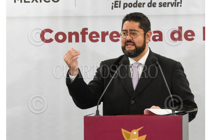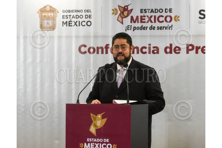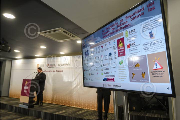 TOLUCA, ESTADO DE MÉXICO, 19FEBRERO2024.- Andrés Andrade Téllez Secretario de Seguridad del Estado de México durante su Informe Semanal de Seguridad en donde informó diversos actos de relevancia en materia de seguridad en la entidad mexiquense. FOTO: CRISANTA ESPINOSA AGUILAR /CUARTOSCURO.COM