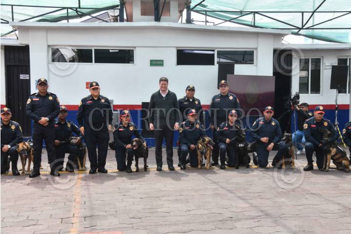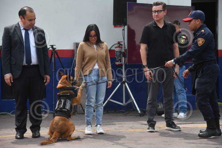 CIUDAD DE MÉXICO, 11JULIO2025.- Pablo Vázquez Camacho, secretario de Seguridad Ciudadana, encabezó la ceremonia conmemorativa por el 28° Aniversario de la Unidad Canina de la Policía Bancaria e Industrial (PBI), realizada en las instalaciones del Centro de Formación de dicha corporación. En el marco del aniversario, fueron presentados tres nuevos integrantes que reforzarán la Unidad Canina: "Zory", especializada en búsqueda de personas en estructuras colapsadas: “Balto", entrenado en detección de narcóticos, y "Kali", con formación en la identificación de explosivos. También se realizó una emotiva despedida para los ejemplares “Molly” y “Héctor”, quienes concluyen su etapa activa tras siete y ocho años de servicio, respectivamente. FOTO: MARIO JASSO/CUARTOSCURO.COM