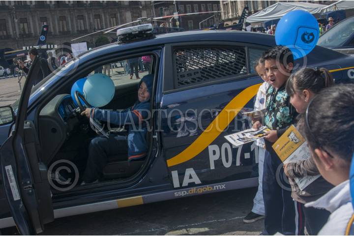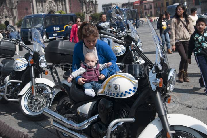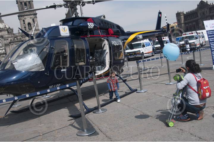 MÉXICO, D.F., 23ENERO2015.- Capitalinos que pasean por la explanada del zócalo capitalino aprovechan para tomarse fotos y mirar los nuevos vehículos de la Secretaria de Seguridad Pública del Distrito Federal, principalmente cinco helicópteros cóndores. FOTO: DIEGO SIMÓN SÁNCHEZ /CUARTOSCURO.COM
