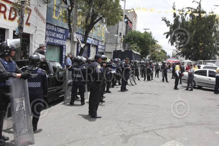 MÉXICO, D.F., 04JUNIO2014.- Granaderos de la SSP-DF realzaron un operativo de ordenamiento vial en la colonia Buenos Aires. FOTO: SAÚL LÓPEZ /CUARTOSCURO.COM