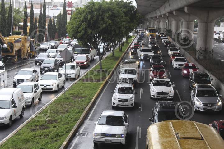 MÉXICO, D.F., 23JULIO2014.- Transportistas bloquearon el Periférico a la altura de 1 de Mayo en Toreo de Cuatro Caminos para mostrar su inconformidad por la restricción que las autoridades capitalinas de que no podrán circular de 7 a 9 de la mañana por la ciudad de Lunes a Viernes. El tráfico en la zona se encuentra colapsada. FOTO: SAÚL LÓPEZ /CUARTOSCURO.COM