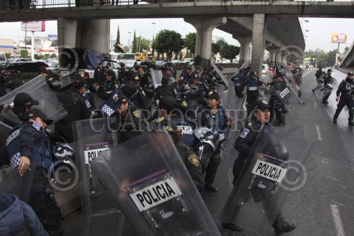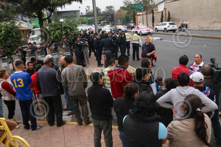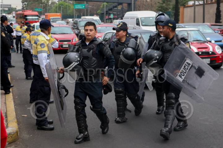 CIUDAD DE MÉXICO, 03MARZO2016.- Granaderos de la SSP-DF, les impidieron el paso en el cruce de Constituyentes y Periférico a un grupo de vecinos de la colonia Alfonso 13 y taxistas quien intentaba manifestarse en la PGJDF para denunciar extorsiones por parte de agentes de la Policía de Investigación. FOTO: SAÚL LÓPEZ /CUARTOSCURO.COM