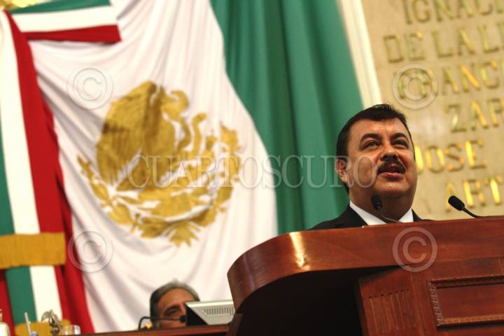 MÉXICO, D.F., 08OCTUBRE2015.- Diputados de Morena alzaron pancartas para protestar durante la comparecencia de Hiram Almeida, secretario de Seguridad Pública. FOTO: MARÍA JOSÉ MARTÍNEZ /CUARTOSCURO.COM