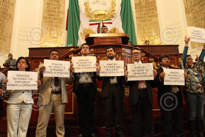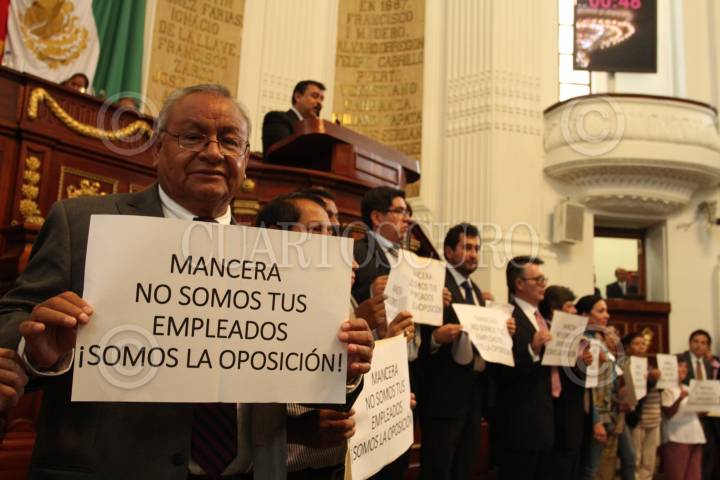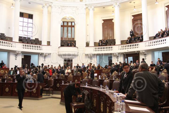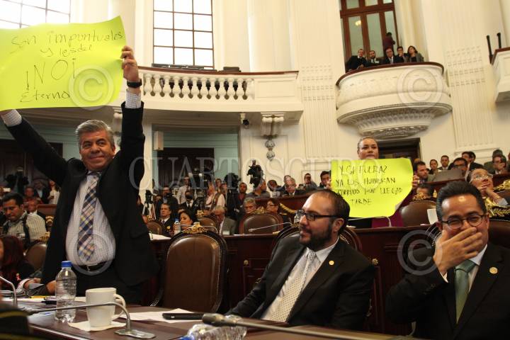 MÉXICO, D.F., 08OCTUBRE2015.- Hiram Almeida, secretario de Seguridad Pública, rindió su comparecencia ante el pleno de la Asamblea Legislativa. Durante la comparecencia ahondó en el tema del presupuesto que la secretaria ha destinado para reducir el alza de asaltos en vía pública. Índices de homicidio, secuestro, violación y robo, fueron otros temas que el secretario incluyó en su comparecencia. En la imagen, diputados de Morena salieron de la sesión en la que el secretario de Seguridad Pública Hiram Almeida presentaba su comparecencia. FOTO: MARÍA JOSÉ MARTÍNEZ /CUARTOSCURO.COM