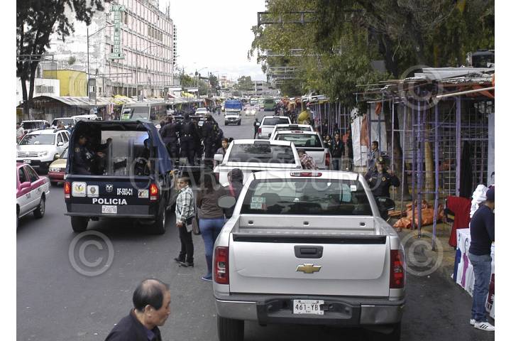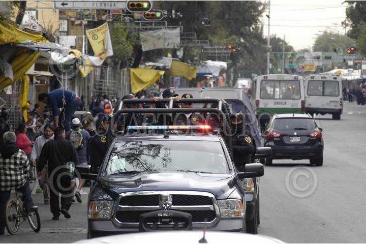 MÉXICO, D.F., 19OCTUBRE2015.- Policías de la Secretaría de Seguridad de Pública del DF realizaron un operativo de recuperación de vialidades sobre el Eje 1 Norte y avenida del Trabajo, ahí retiraron puestos que se encontraban sobre el arroyo vehicular. FOTO: ARMANDO MONROY /CUARTOSCURO.COM