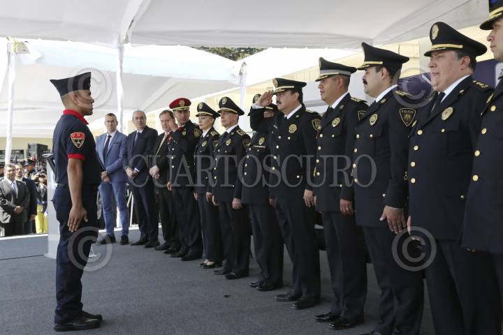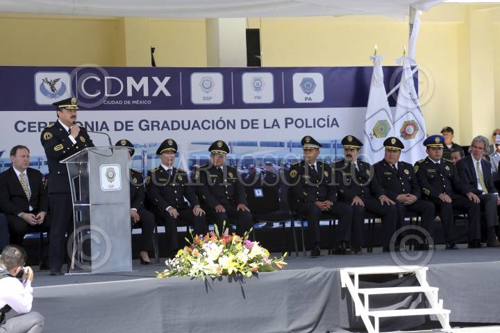 MÉXICO, D.F., 11NOVIEMBRE2015.- El titular de la Secretaría de Seguridad Pública del Distrito Federal (SSP-DF), licenciado Hiram Almeida Estrada encabezó esta tarde la Ceremonia de Graduación de las Generaciones 215 y 216, de la Policía de la Ciudad de México. Exhortó a los 755 cadetes graduados a ejercer sus funciones con lealtad y legalidad hacía los fines únicos de salvaguardar y brindar seguridad a la ciudadanía. Durante el evento, efectuado en la explanada del Instituto Técnico de Formación Policial (ITFP), el funcionario indicó que “hoy estos 755 elementos surgen a la luz pública como nuevos policías, entre ellos, 188 son mujeres de las que debemos destacar su valor, respeto y admiración, por vincularse en la tarea de preservar la seguridad de nuestra sociedad”. FOTO: SSPDF /CUARTOSCURO.COM