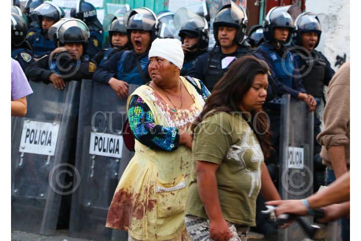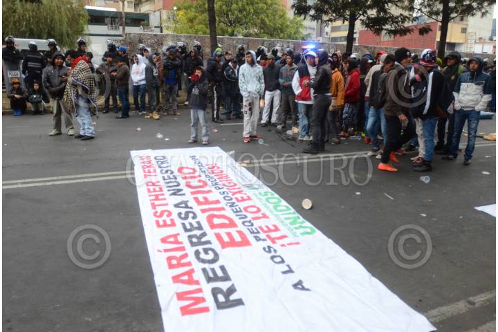 MÉICO, D.F., 29ENERO2016.- Un grupo de campesinos se manifestaron afuera de las oficinas de las Confederación nacional de propietarios Rurales en la lateral de la avenida Chapultepec y Valladolid en la colonia Roma, quienes rompieron los vidrios de las instalaciones, por lo que fueron acordonados por granaderos de la SSP DF. FOTO: ARMANDO MONROY /CUARTOSCURO.COM
